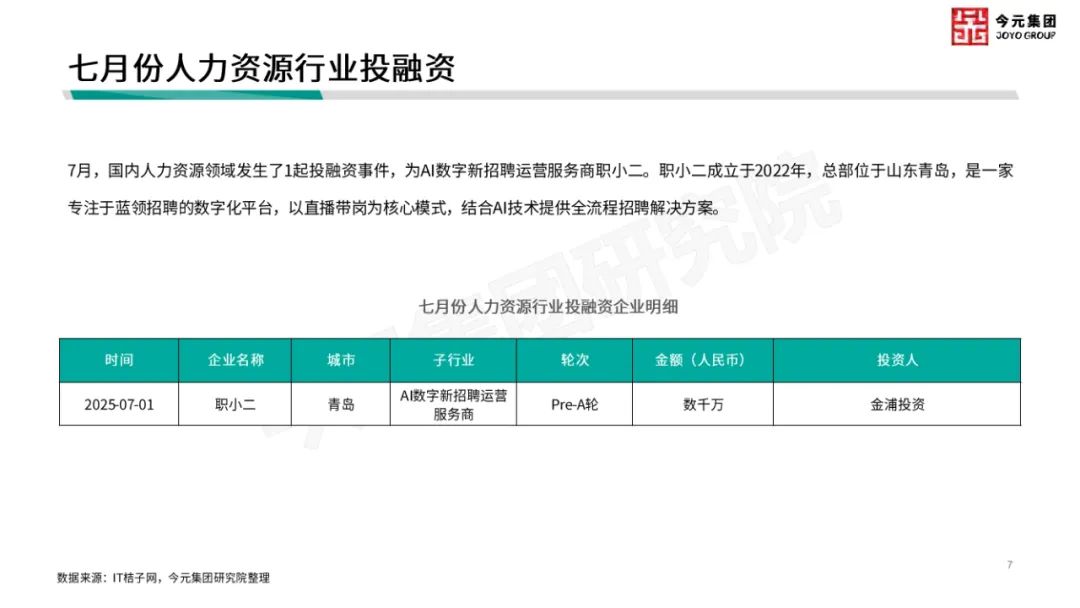 今元集团:基于人力资源视角之垂直行业发展动向观察报告(2025年7月刊)